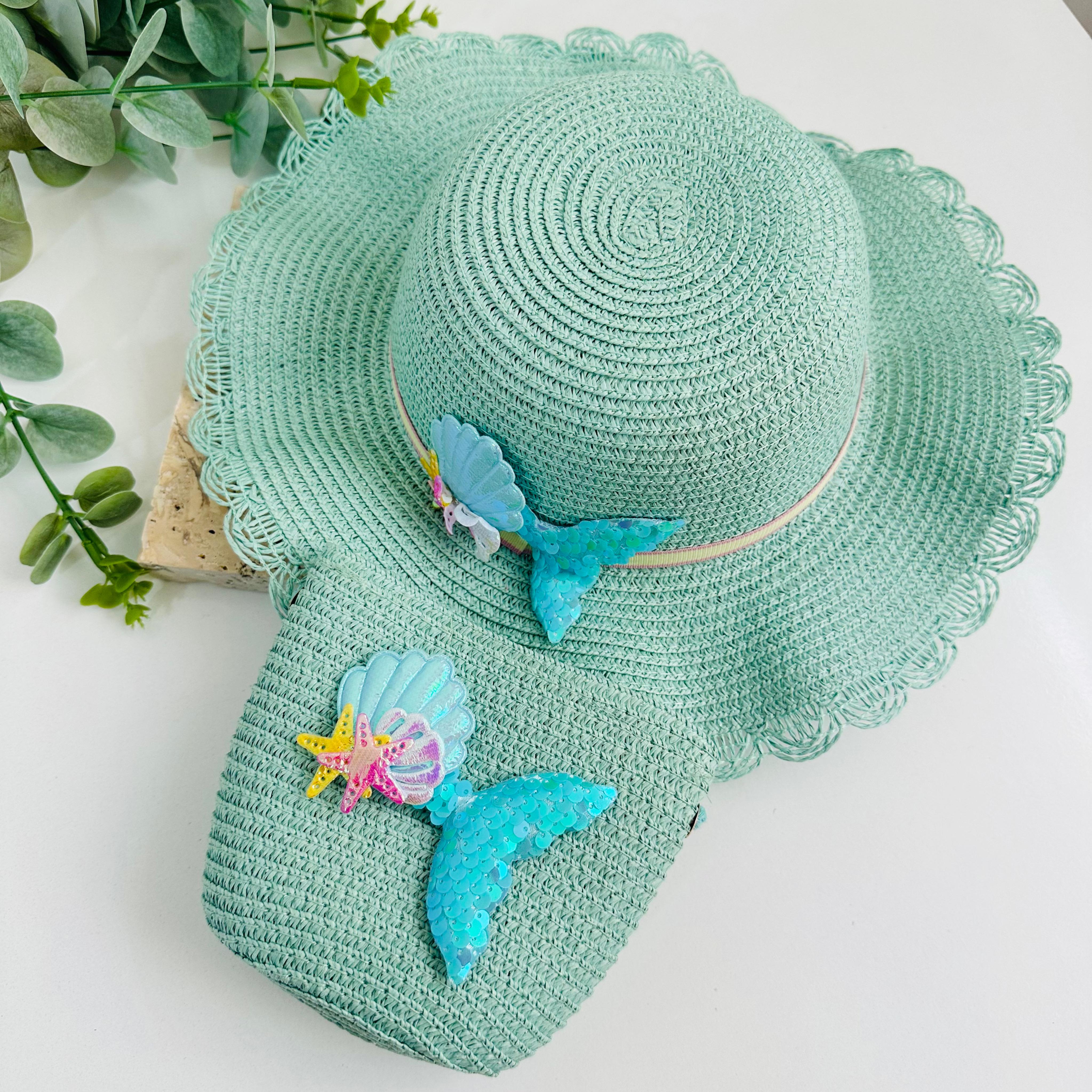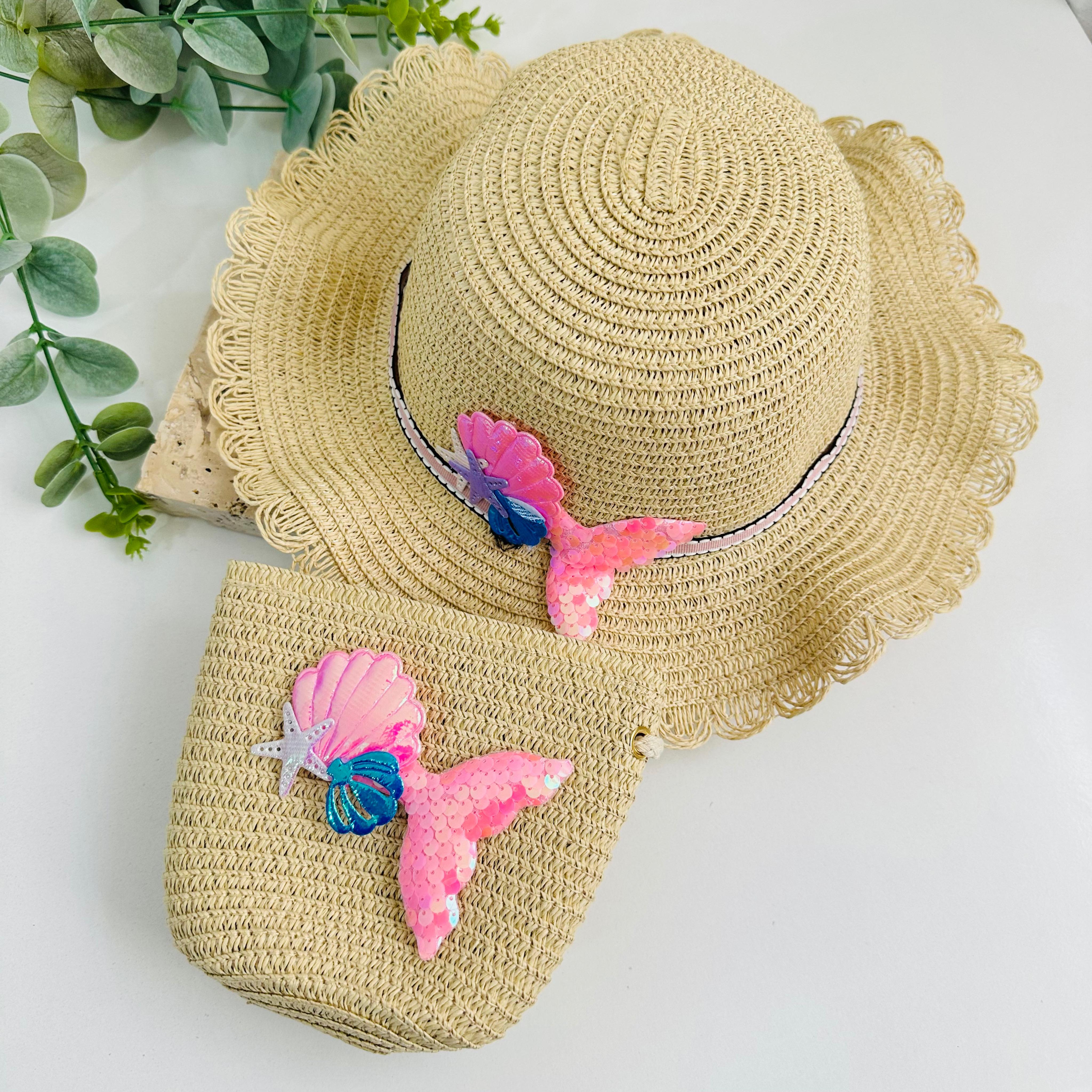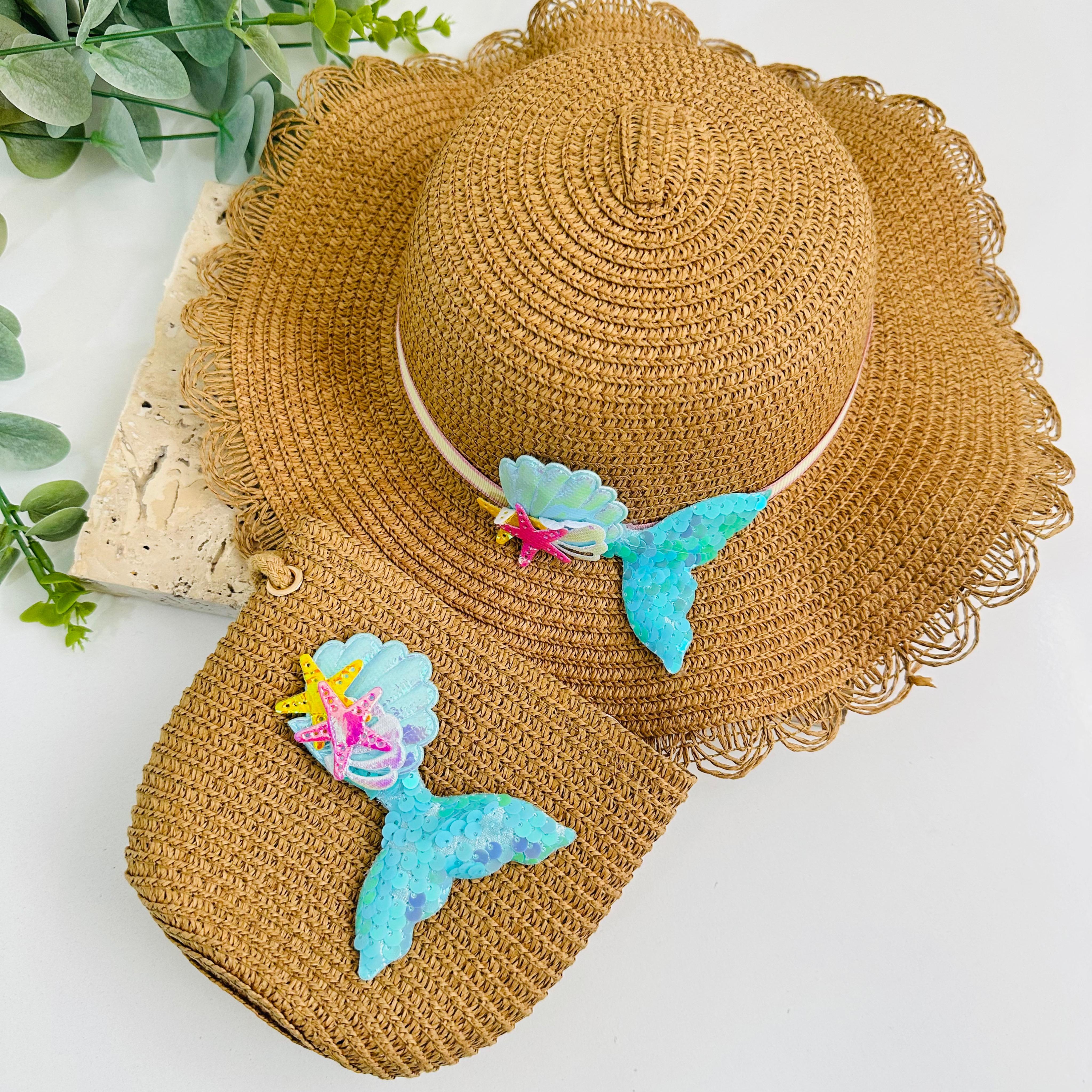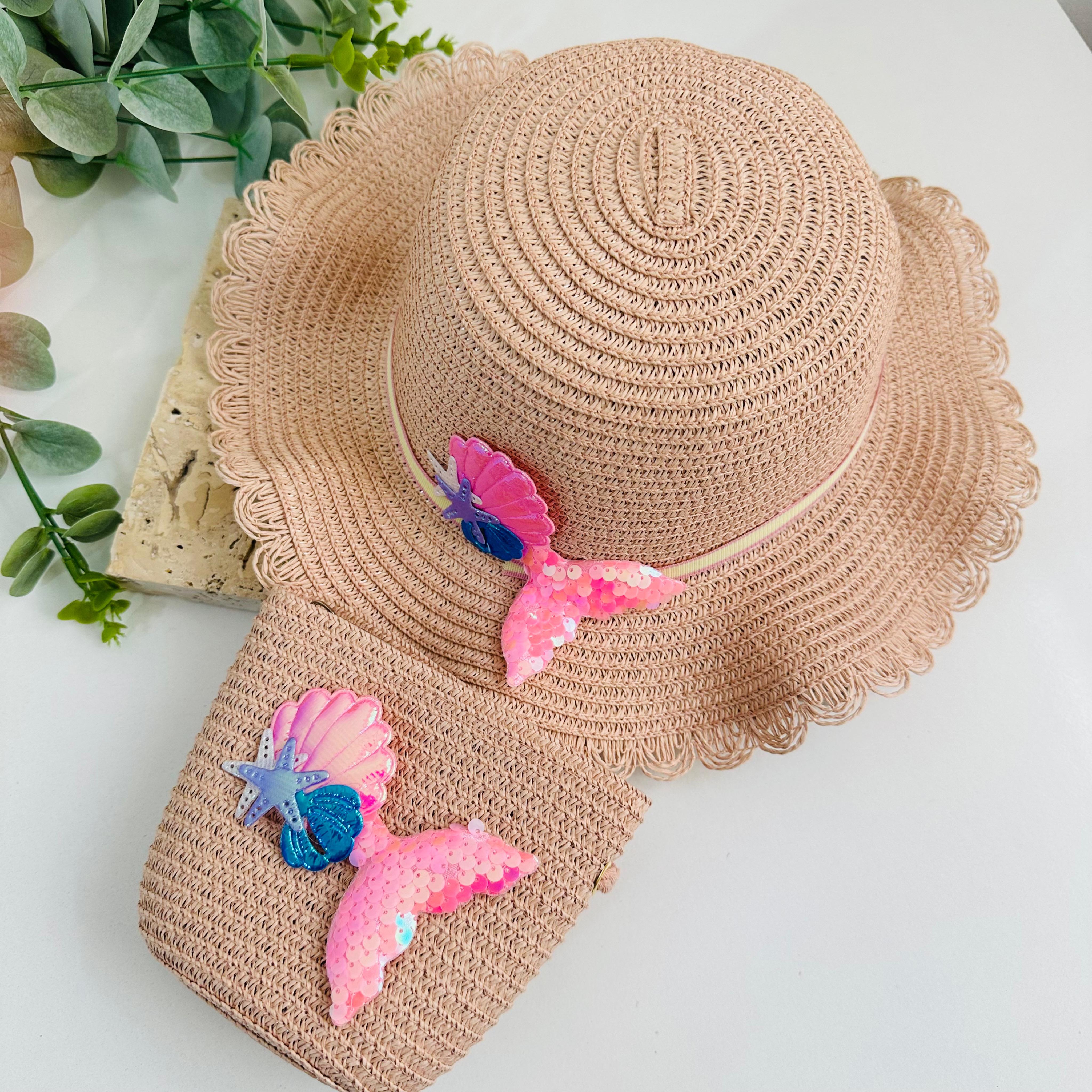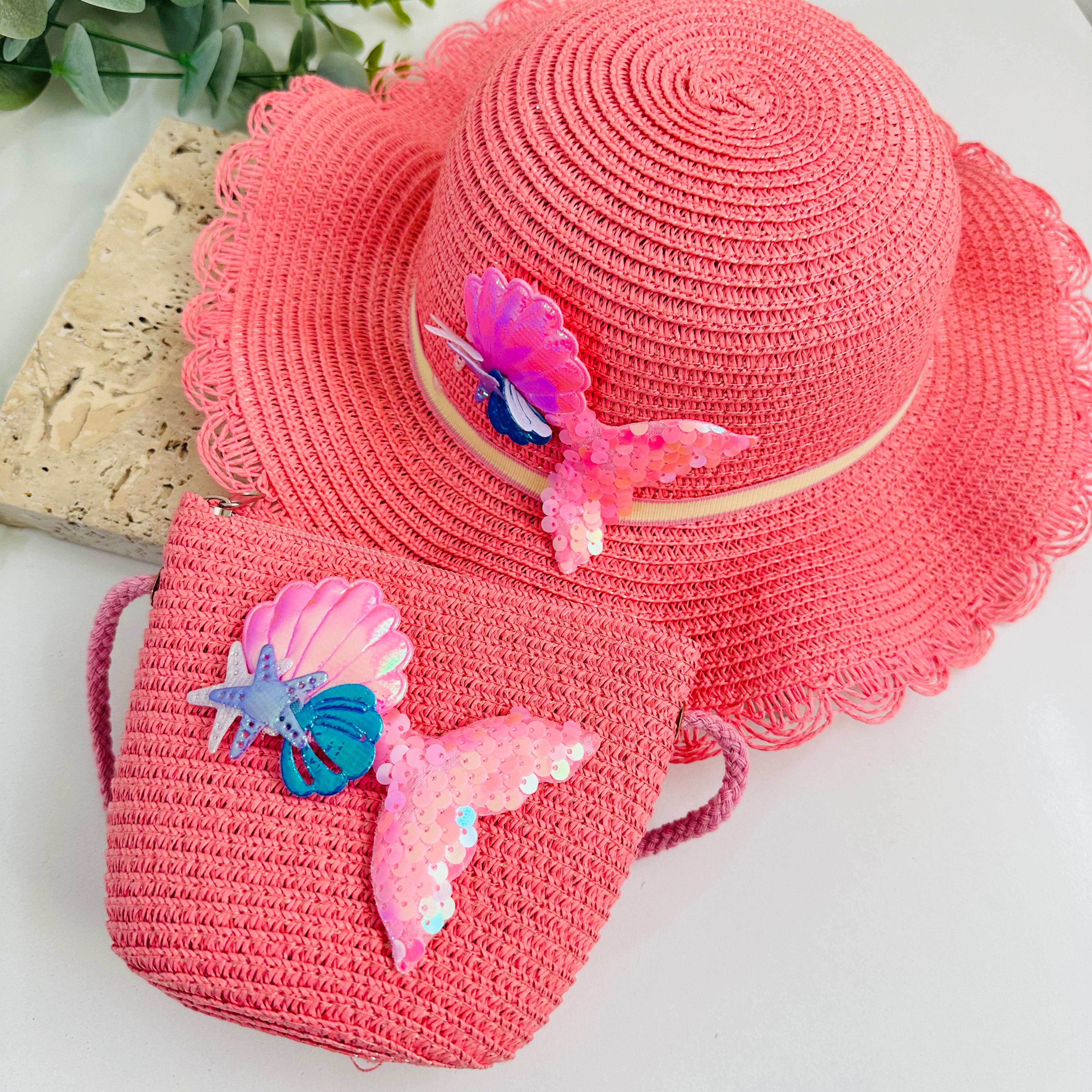Deniz Kızı Detaylı Hasır Şapka Çanta Kombini