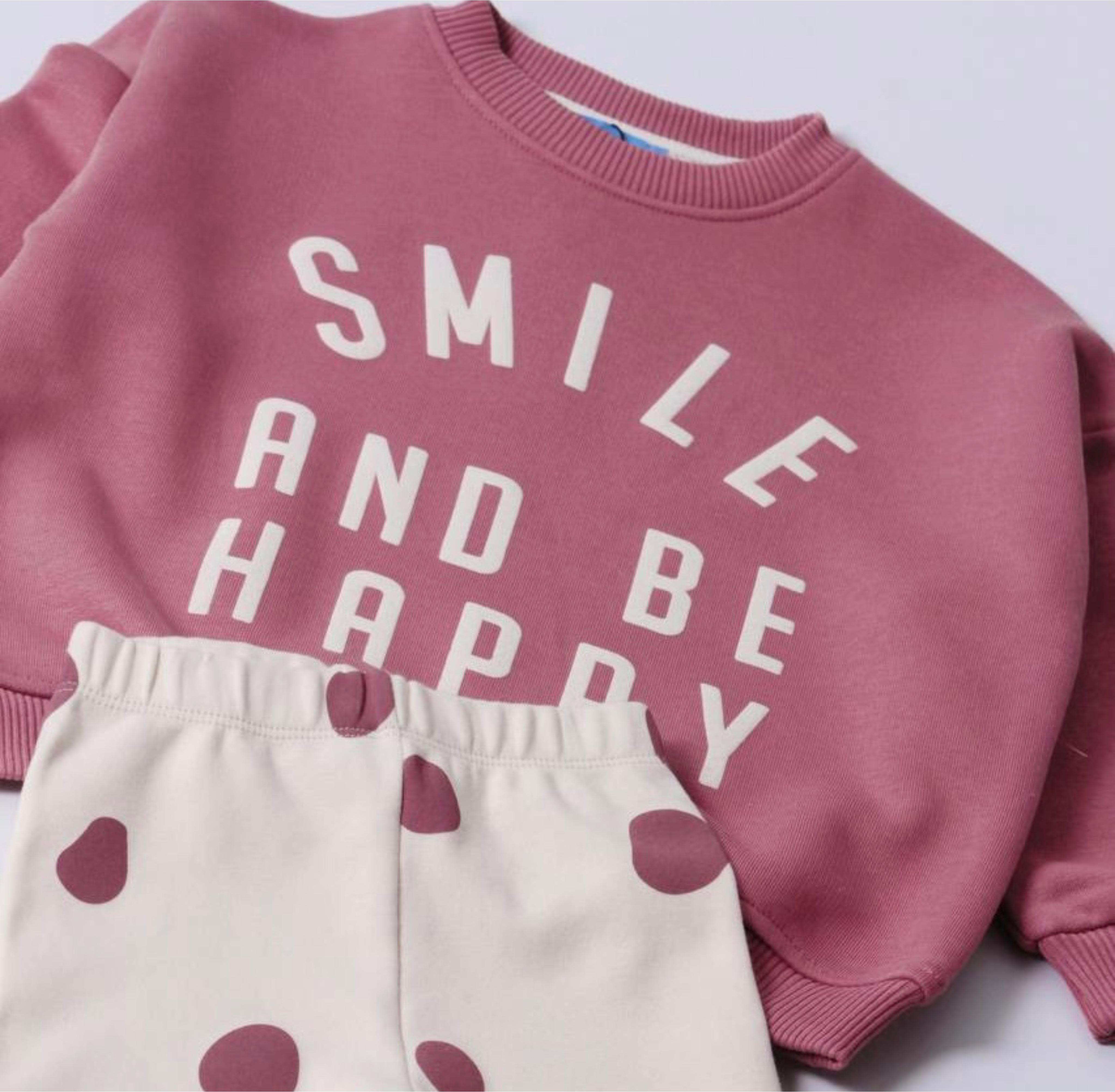 Smile And Be Happy Kız Çocuk Sweatshirt ve Tayt Takım